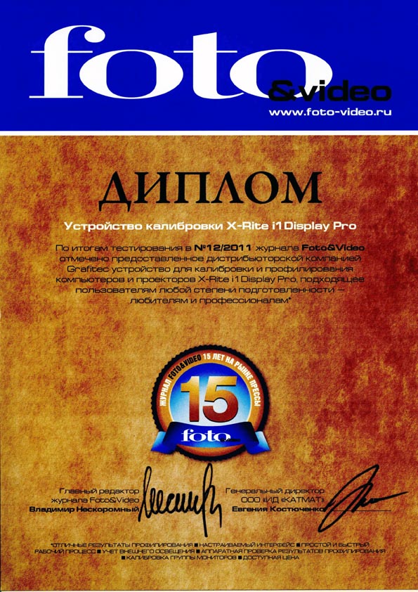 Специалисты Foto&Video обратили внимание на отличные результаты профилирования, настраиваемый интерфейс, простой и быстрый рабочий процесс, учет внешнего освещения, аппаратная проверка результатов профилирования, калибровку группы мониторов, доступную цену.